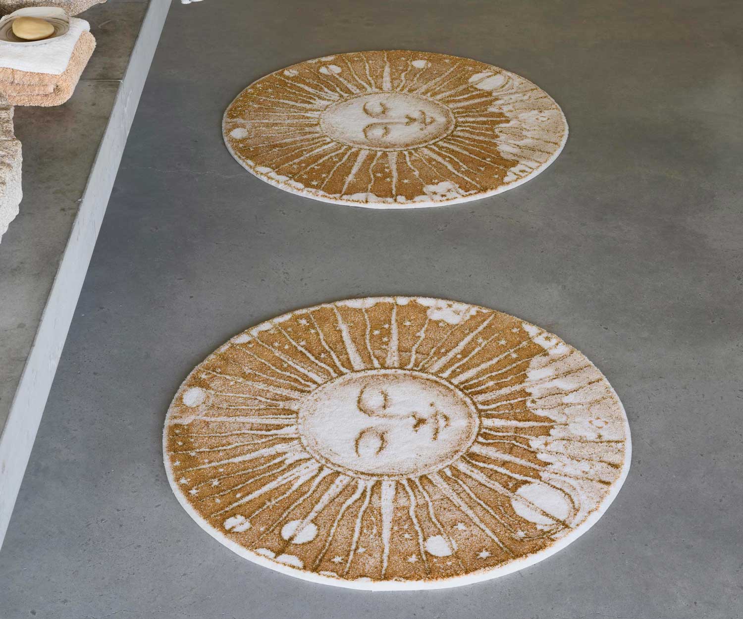 With its distinctive round shape (approx. Ø 90 cm), the ROI SOLEIL bath mat becomes a stylish focal point in any bathroom while providing everyday comfort underfoot.