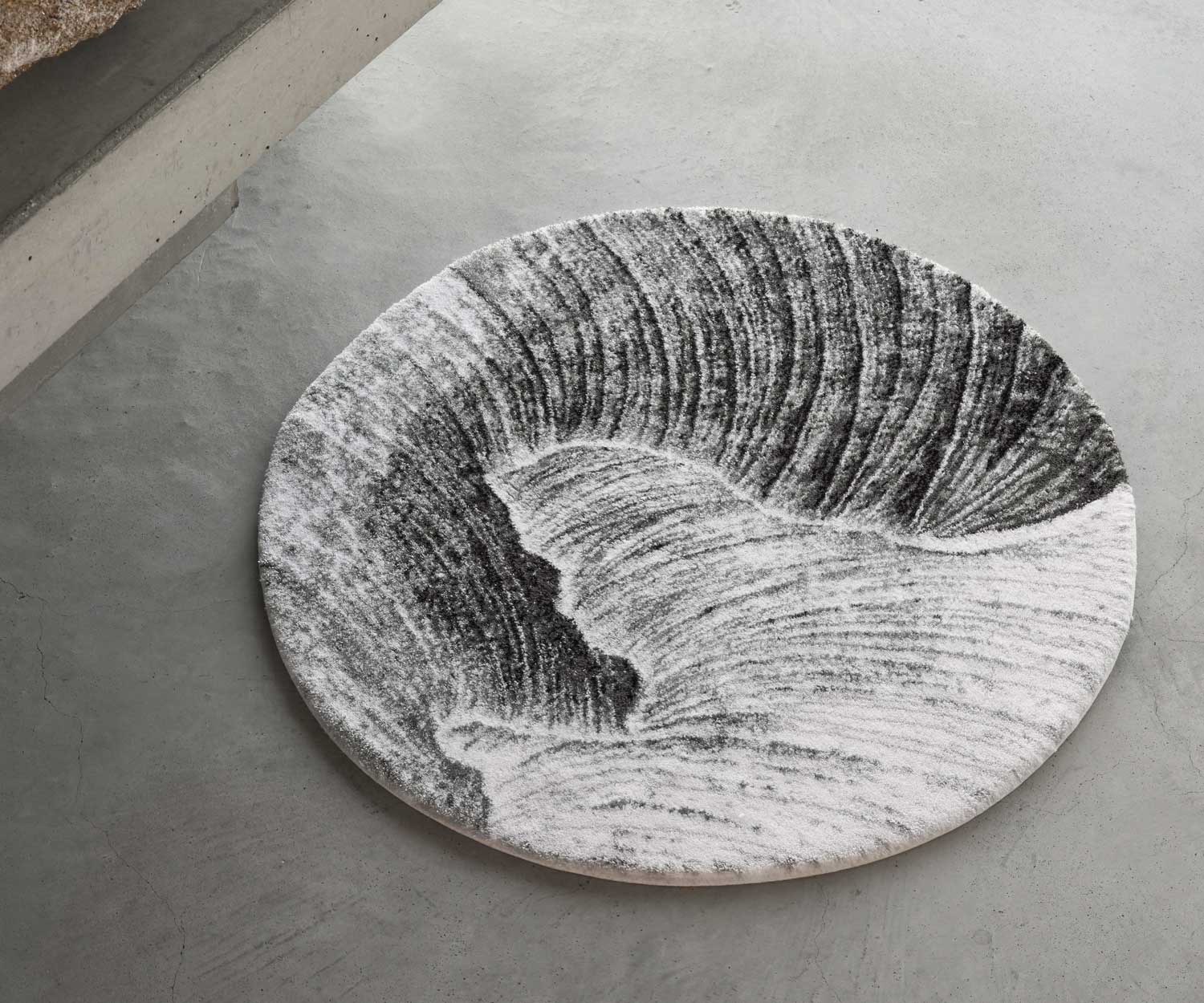 Subtle lurex accents add a refined shimmer, enhancing the sophisticated design. The round shape (Ø 90 cm) makes the YOJI bath mat a distinctive statement piece in any bathroom.