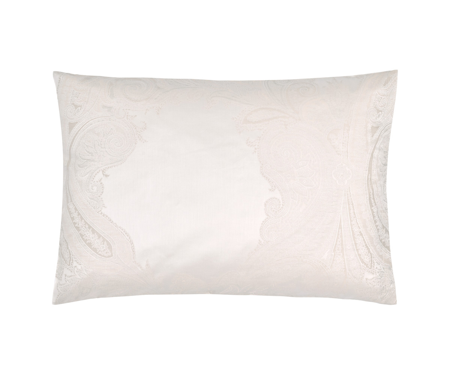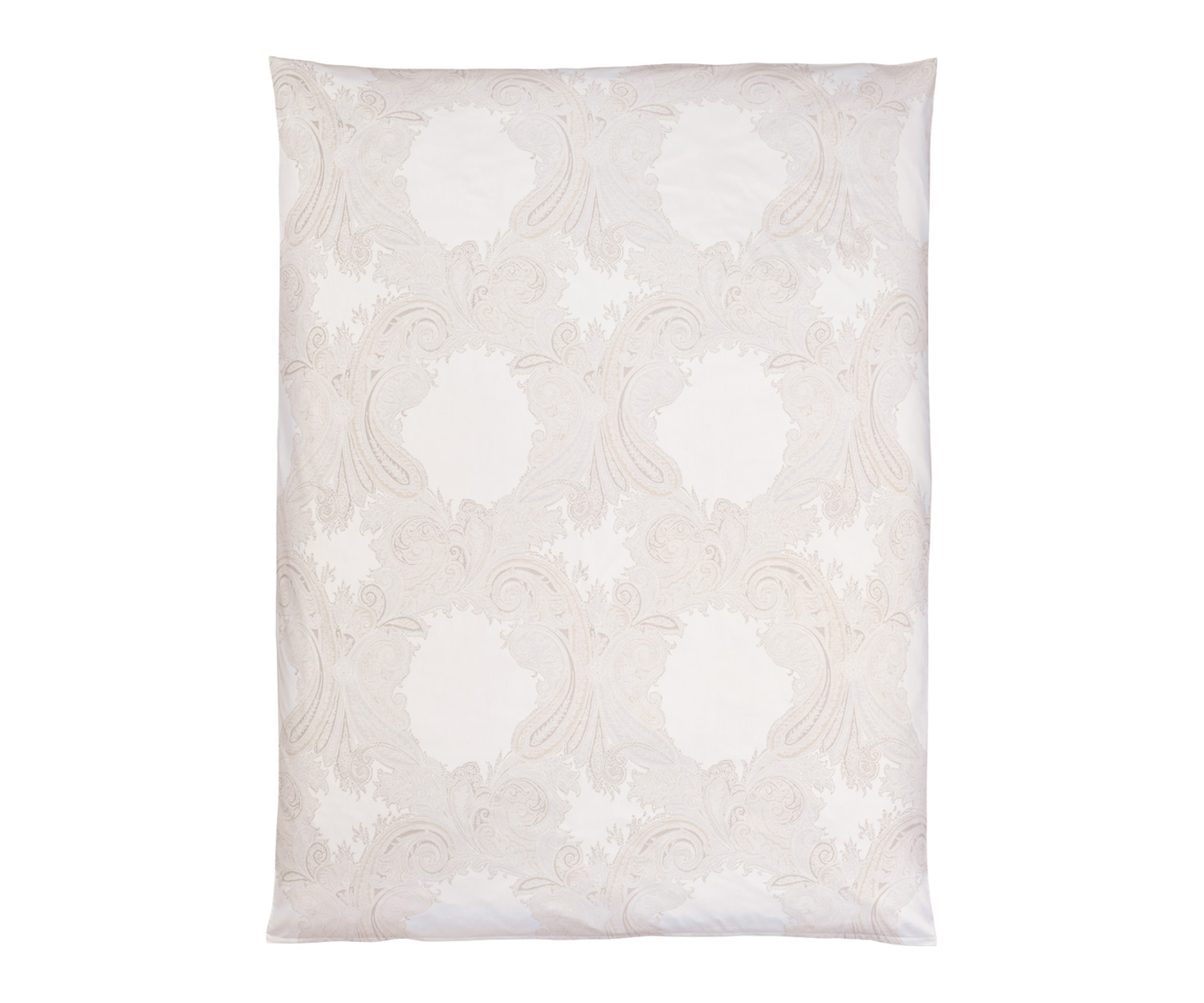 El sofisticado diseño paisley, tejido en uno de los talleres más prestigiosos de Italia, brilla en delicados tonos grises, plateados y rosados. Gracias al refinado juego entre urdimbre y trama satinada, se crea un efecto de profundidad y brillo que fascina a primera vista.